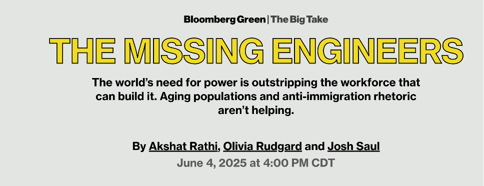 Bloomberg Green has published two articles recently discussing the two primary bottlenecks preventing faster buildout of electrical infrastructure in the U.S., Europe, and around the world. Those two bottlenecks are transformers (some delayed 3 to 5 years) and skilled, craft labor (it takes ten years to train a lineman and about 4 years to train an engineer to do lower-voltage work).